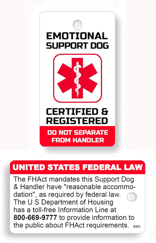 Service, Diabetic, Seizure, ESA, PTSD, or Therapy Dog Key Tag/Collar Tag for ADA And/Or Fhact Service and Support Animals